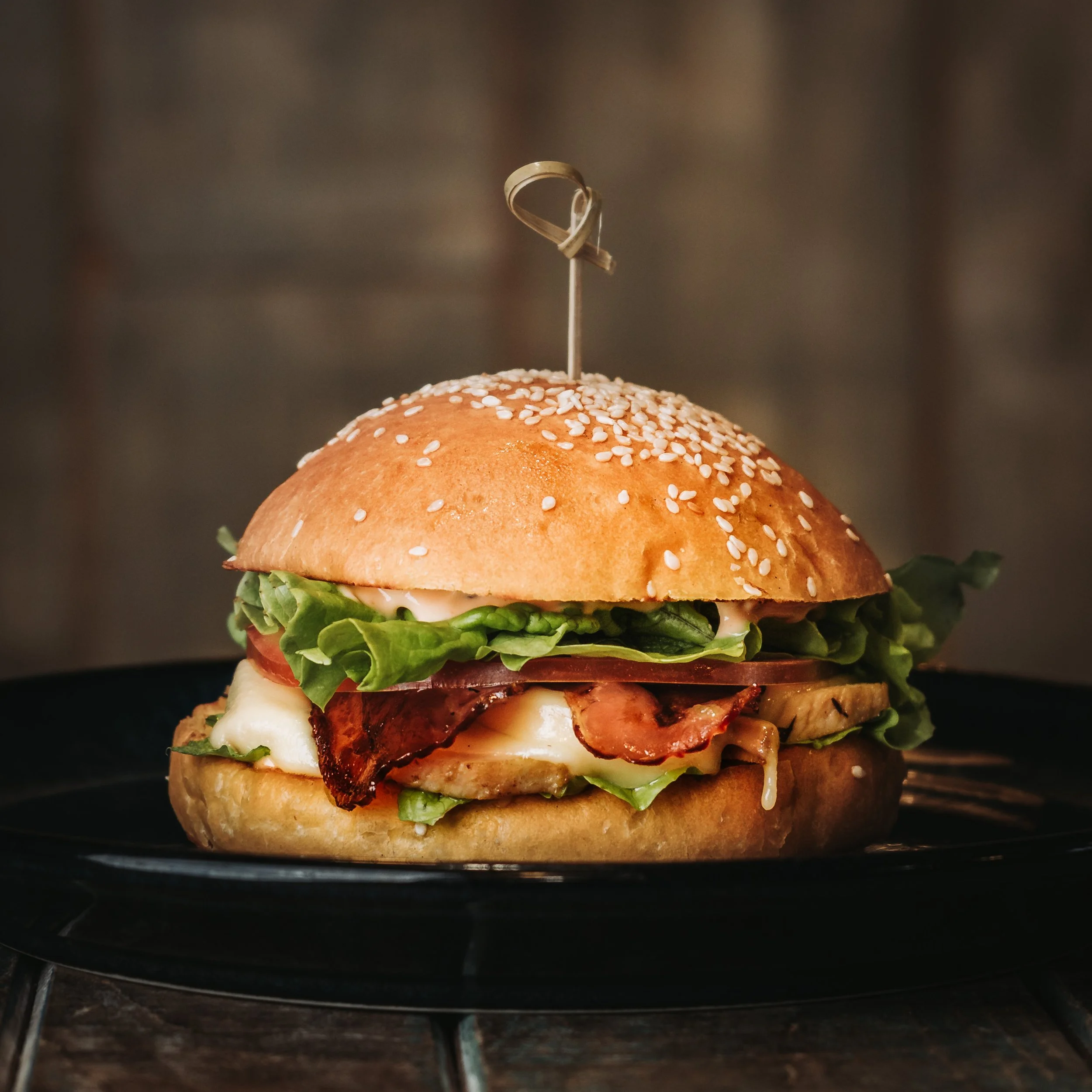 FRANGO GRELHADO, BACON, QUEIJO CHEDDAR, ALFACE, TOMATE E MOLHO CHIPOTLE